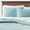 Give your bedding a modern update with this Lustrous Velvet Comforter & Sham Set from Threshold™. This coordinated bedding set includes two standard shams and a matching comforter in a solid color for easy coordination with any decor. Made from lustrous velvet fabric with soft fill, the comforter brings you year-round comfort. Plus, the six-inch envelope closure on the sham makes it easy to cover your pillow. Mix and match this bedding set with sheets and decorative pillows to create a stylish and comfy bedroom space.