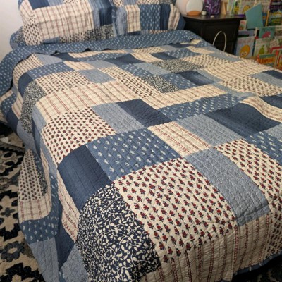 [This review was collected as part of a promotion.] I was so excited to see this as an option online! This is a cute quilt set. I especially love the patchwork quilt pattern and the blues throughout, but probably my favorite aspect is that it's 100 percent cotton including the batting. But ultimately this is a good lightweight quilt for spring or fall.