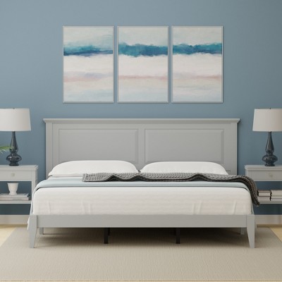 King Platform Bed Frame with Storage Drawers, Upholstered Headboard Shelf, Sturdy Quiet Structure, No Box Spring Needed, Gray
