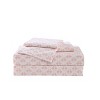 - Twin Set Measures: Flat Sheet- 66"W X 96"L, Fitted Sheet- 39"W X 75"L , Standard Pillowcase- 20"L X 30"W; Full Set Measures: Flat Sheet- 81"W X 96"L, Fitted Sheet- 54"W X 75"L, Standard Pillowcases- 20"L X 30"W; Queen Set Measures: Flat Sheet- 90"W X 102"L, Fitted Sheet- 60"W X 80"L; Standard Pillowcases 20"L X 30"W; King Set Measures: Flat Sheet- 108"W X 102"L, Fitted Sheet 78"W X 80"L, King Pillowcases- 20"L X 40"W