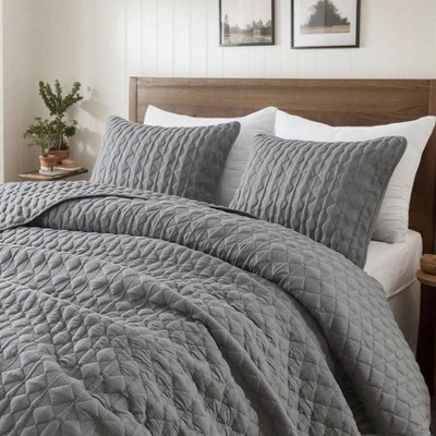 King Quilt Set, Ultra Soft, Lightweight All - Season, Grey Summer Bedspread, 106x96 Inch, 2 Pillow Shams Grey King