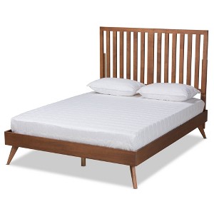 King Saki Wood Platform Bed Walnut Brown - Baxton Studio