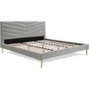 With its modern tailored aesthetic, this upholstered bed frame is sophisticatedly dreamy. This luxurious upholstered bed is a must-have for those who want to create a design statement in their bedroom decor. It features a modern take on the classic mid century low profile design with chevron stitched tufting on a padded headboard. The vibe is at once chic and tactile-centric. You can practically feel the plush velvet upholstery under your fingers with just one glance. Whispery blush or Gray