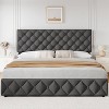 Transform your bedroom into a cozy, stylish retreat with this upholstered platform bed frame. Featuring an adjustable headboard, four storage drawers, and a modern grey button-tufted design, it's the perfect blend of comfort, functionality, and elegance—ready to elevate your sleep space? Highlights at a glance: Soft, breathable linen upholstery with high-density foam for comfort Adjustable headboard fits 6-12 inch mattresses perfectly Four storage drawers with wheels for secure organization Sturdy metal frame and wooden slats—no box spring needed Footboard prevents mattress sliding for stability Noise-free design with EVA sponge for a peaceful sleep Modern button-tufted design for a sleek look Easy to assemble for hassle-free setup Specification: Size: full / queen / king Color: grey / beige Material: linen+sponge+metal+engineered wood Friendly note: Fit mattresses 6 to 12 inches thick for optimal support and comfort. Bed frame only; mattress not included. Make sure to tighten all screws and connections during assembly to ensure stability. For a smooth assembly process, it is recommended to have two people assist with installation. Packing list: Platform bed frame x1 Headboard x1 Footboard x1 Drawer x4 Hardware bag x1 Assembly guide x1