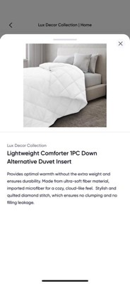 [This review was collected as part of a promotion.] Absolutely love this duvet insert! The Lux Collection lightweight down alternative is perfectly fluffy without being too heavy, making it ideal for year-round use. It feels incredibly soft, stays evenly filled with no clumping, and gives my bed that cozy, hotel-luxury look. It’s breathable, comfortable, and a great option if you want warmth without overheating. Highly recommend for anyone upgrading their bedding!