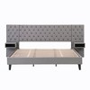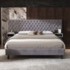 - Wingback Headboard with Deep Diamond Tufting Features an elegant wingback headboard upholstered in soft velvet with deep diamond-shaped button tufting, adding a touch of sophistication and providing a cozy spot to relax while reading or watching TV.