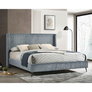 - Luxurious Upholstery: The Mavela bed is wrapped in luxurious, wide wale corduroy upholstery in a soothing blue color. This soft, plush fabric not only adds a sophisticated touch to your bedroom but also enhances comfort, inviting you to relax and unwind in style.
