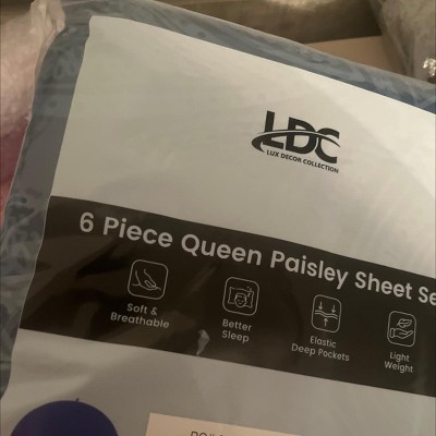 6 Piece Sheet Sets Paisley Printed Sheets Set Ultra Soft Deep Pocket Microfiber Bed Sheets - Lux Decor Collection