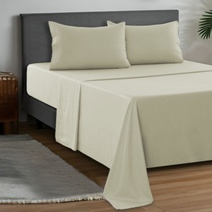 Solid 4 Piece Sheet Set Easy Care Ultra Soft Brushed Microfiber Bedding Deep Pocket Bed Sheets with Pillowcases  - Lux Decor Collection - 1 of 4