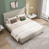 Queen/King Size Upholstered Platform Bed Frame with High Headboard, No Box Spring Needed, Beige/Light Gray-ModernLuxe