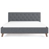 - Luxuriously Upholstered Frame in Fabric Grey The solid wood frame is padded with high-density foam and upholstered in elegant Fabric Grey, creating a plush, inviting surface perfect for lounging, reading, or sleeping in modern luxury.