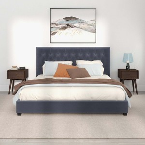 - Elongated Headboard with Tufted Elegance The bed boasts a tall, elongated headboard featuring a sleek tufted design, creating a sophisticated focal point in the bedroom while offering superior back support for comfortable sitting.