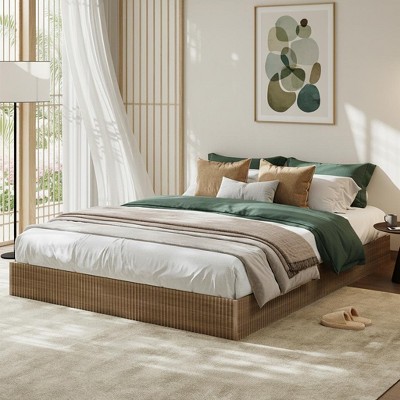 KING Size Wood Platform Bed Frame, Farmhouse Style Bed with Noise-Free Slats, No Box Spring Needed, Nature Bedroom Furniture, Easy Assembly
