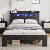 King Size Wood Platform Bed with Storage LED Light Headboard and 2 USB