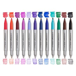 KINGART Permanent Twin-Tip™ Pens 12 Colors