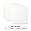 KINGART® Stretched White Canvas 6" x 6", 100% Cotton, Back Stapled, Gesso-Primed, 8-Pack
