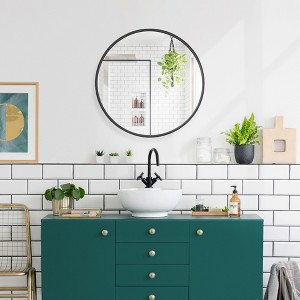 Bring elegance to your space with our modern round wall mirror. This circle mirror was crafted with a waterproof aluminum frame with a brushed matte finish. Our wall-mounted mirror features a high-clarity finish with extremely sharp reflections and no distortion. With its anti-fog coating, easily use as a bathroom wall mirror. A pre-installed butterfly clip and hardware are included for easy installation. Sophisticated, yet trendy, this decorative wall mirror is ideal for any space in need of mirror wall decor.
