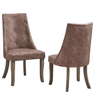 Kings Brand Furniture Bierce Tufted Upholstered Fabric Dining Room Chairs, Set of 2, Dark Brown