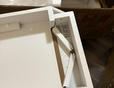 Was delivered with split wood. Target seemed to know it was broke, they shoved so much packing foam to try to hide the split wood.