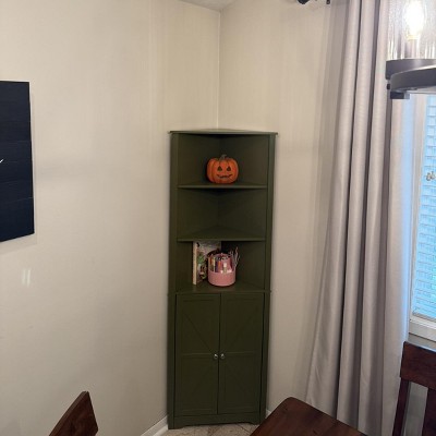Kings Brand Furniture Tall Wooden Corner Cabinet with 2 doors & 3 shelves—perfect for saving space in the bathroom, kitchen, or living room