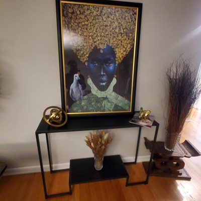 Kings Brand Furniture – Vidal Modern Metal/Wood Console Sofa Table with Storage Shelf, Black/Grey- Perfect for Entryways and Living Rooms