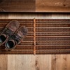 - The top of this wooden doormat is lined with stiff PVC bristles, perfect for using as a boot scraper to free your shoes from slush and caked-on mud