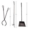 - The fire place tools feature extra long handles with a 44-inch poker to adjust large fires, 28-inch tongs to move logs up to 8-inches, and a 36-inch shovel to easily clean up ash
