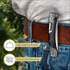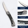 Rugged functionality and sleek good looks combine in the Folding Knife for Men and Women by Kings County Tools. With an 8Cr13MoV stainless steel blade and a sleek resin-impregnated wood handle, this buck pocket knife is ideal for both daily carrying and outdoor excursions. This cool pocket knife features a unique saddle-style locking mechanism that straddles the knife back, making it easy to protect your fingers from the blade during opening. The delicate scrollwork makes this engraved pocket knife for men perfectly gift-worthy for collectors and outdoorsman alike. Kings County Tools is your source for pocket knives & folding knives with quality you can count on.