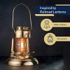 - The brass and glass oil lamp features a modern design with all the charm of antique railroad-style oil lanterns
