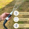 - The outdoor hose includes a nozzle that features an adjustable cone jet, allowing you to easily switch between misting delicate plants and watering a larger vegetable garden