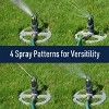 - The rotating lawn sprinklers head switches between 4 spray patterns (narrow stream, multiple streams, narrow spray, and wide spray) with a simple click