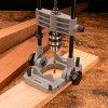 - This precision drilling jig attachment includes a 3/8-inch shaft and chuck for quick tool conversion, with smooth and wobble-free operation to achieve professional results