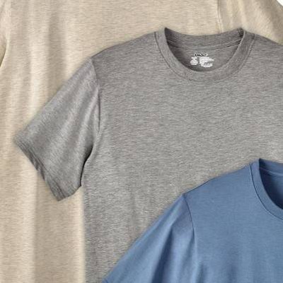 The best things come in threes. Our simple crewneck undershirts are made from combed cotton flat knit jersey making them lightweight, soft, and breathable. Not to mention, the perfect layer underneath button downs, hoodies, flannels, and so many more shirts and outer layers during the year. Thanks to convenient 3-packs, it's easier than ever to stock up on these tees..