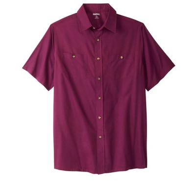 KingSize Plaid Wrinkle-Resistant Short Sleeve Button Down - 10XL, Dark Magenta Plaid