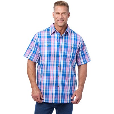 This plaid short-sleeve button-down is simple enough that you can pair it with any pants, but still classic enough to wear to the office. Enjoy wearing this easy-care shirt throughout the year. Easy-care. Faux horn buttons and pointed collar. Two button-through chest pockets. Straight hem with side vents. Box-pleated back yoke. Big sizes about 34" long. Tall sizes about 36" long. Cotton/polyester. Machine wash. Imported.