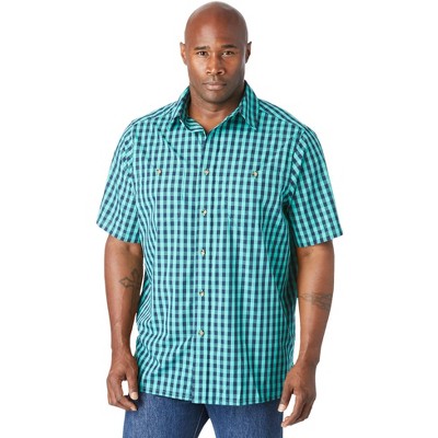 KingSize Short Sleeve Wrinkle-Free Sport Shirt - 8XL, Tidal Green Check