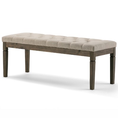 Hand constructed using solid wood, engineered wood and high density foamUpholstered with a durable Natural Linen Look FabricFeatures large interior storage space with child safety hinge to prevent lid slammingMulti-functional ottoman can be used in bedroom, living room, family room, hallway as an entryway bench, foot stool, accent furniture or provide additional sittingTransitional design includes top stitching detail and nail head trimSimple assembly; just attach legsDimensions: 17.7in d x 48in w x 16in hEfforts are made to reproduce accurate colors, variations in color may occur due to computer monitor and photography