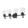 The industrial-inspired Kinsley Collection of pendant and vanity fixtures uses simple, artisanal detailing to create a timeless statement. The vintage-influenced craftmanship is finished in a choice of Brushed Nickel, Matte Black, Chrome, and Heritage Gold. Room Recommendation: Bathroom/Powder Room Mounting Direction: Up/Down Dimmable: Yes Shade Included: Yes Material: Steel, Finish Color: Brushed Nickel, Width: 28", Height: 9.5", Length: 6", Depth: 6", Backplate Width: 5.25", Backplate Length: 5.25", Lamping Type: Incandescent, Number Of Bulbs: 4, Wattage: 100 Watts, Dimmable: Yes, Moisture Rating: Damp Rated