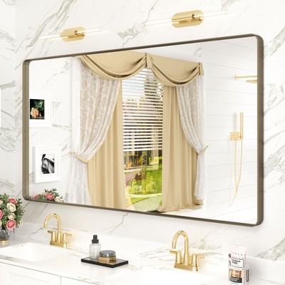 KIOTEE 60 in. W x 30 in. H Rectangular Aluminum Alloy Framed and Tempered Glass Wall Bathroom Vanity Mirror in Brushed Bronze