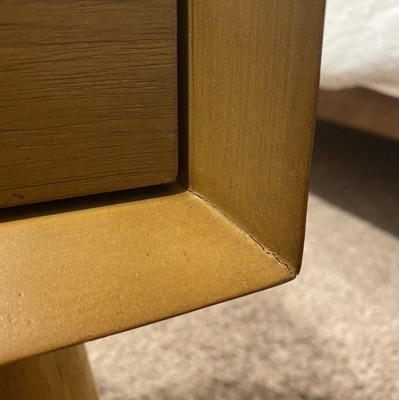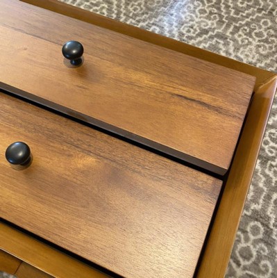 Mid-century modern-chic” sums up our Dorsey Night Stand nicely. Dual drawers feature steel hardware and offer space for your latest page-turner, magazines, TV remotes or travel treasures. The icing on this ultra-cool cake? A unique beveled edge detail that helps this piece to truly stand out in your living space.