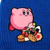 Stay warm and cozy with this Kirby cuff beanie. The beanie comes in royal blue and features a woven patch image of Kirby floating while art behind the cuff reveals a pile of food. The beanie is made with high-quality acrylic yarn materials and fits most sizes. Kirby fans will love this comfy and cozy cuff beanie.
