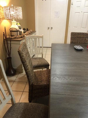 Love the Look of the Chairs BUT some workers in the place that made the chairs need to learn how to drill holes correctly. Some of the chairs were a challenge because of being off center with the holes. I had read the reviews and saw the complaints about the holes but was hoping they were exaggerating but they weren’t!!!!