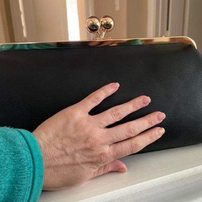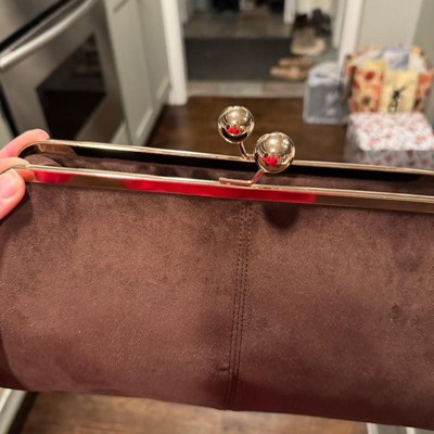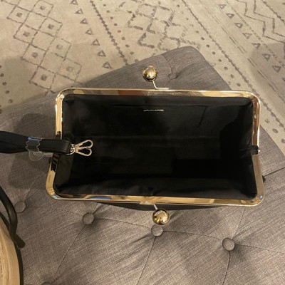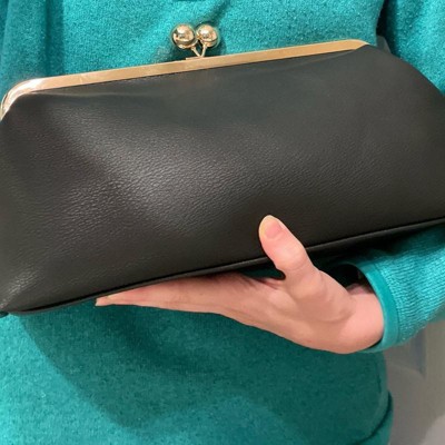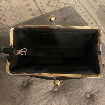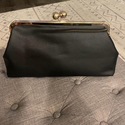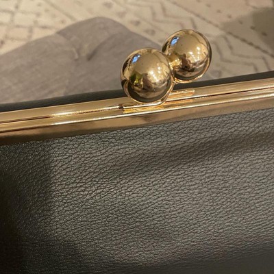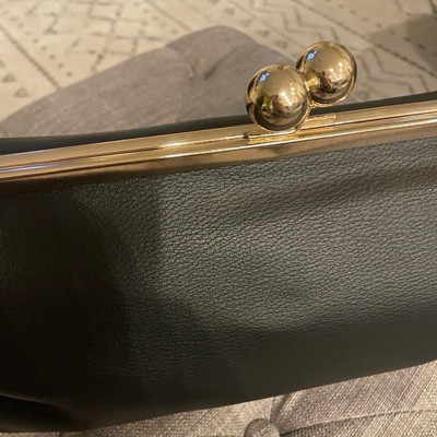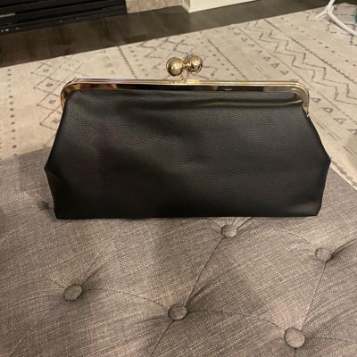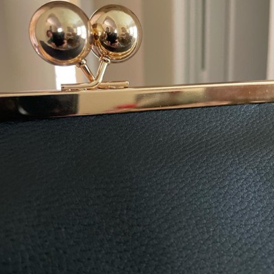 This Kiss Lock Clutch Bag from A New Day™ adds a sophisticated touch to your outfit. This twill fabric bag features a main compartment with an inner slip pocket and a classic kiss lock closure that adds vintage-inspired charm to any ensemble. A detachable top handle completes the design with versatile carrying options.
