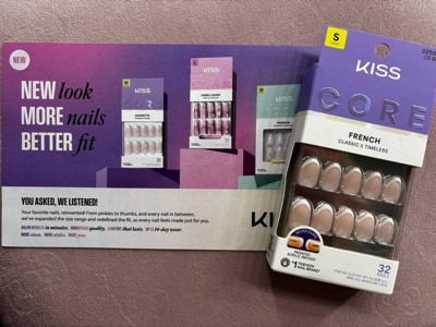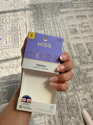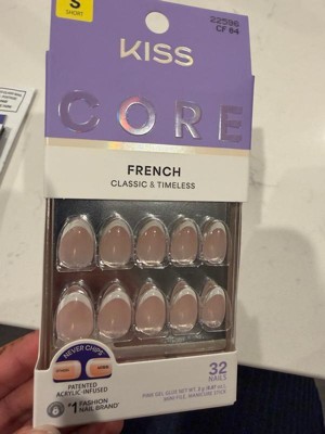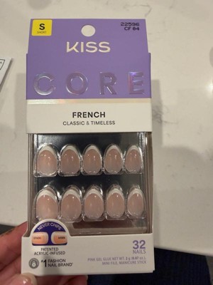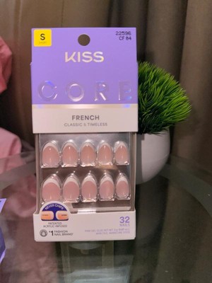 NEW Look. MORE Nails. BETTER Fit! Keep it classic in KISS CORE French Press On Nails. These nails feature patented, chip-free, acrylic-infused technology that ensures long-lasting color and durable wear. These nails offer timeless French tips in wearable shapes and lengths. Effortless styles, perfect for every day.