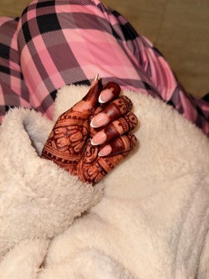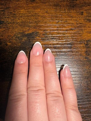 [This review was collected as part of a promotion.] The french tip pink almond press on is really pretty and | love a natural, French nail look, which these almost give. The finish is glossy and smooth, and the aml almond size fits well with plenty of options in the pack. I absolutely admire the size S nails cause i can do everything with my hands without feeling uncomfortable. However, they are a little thin, so I can slightly see the glue underneath. Removal was easy and gentle when done carefully. However, the glue could use some improvement.