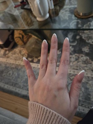 [This review was collected as part of a promotion.] The comfort level of these short almond French tip press-ons is generally high — the shorter length makes them feel more natural under everyday use, with less chance of catching on things or feeling bulky, so you can type, text, or wash dishes without getting annoyed. In terms of feel, they have a smooth, lightweight surface that doesn’t feel stiff or overly hard once applied, giving the sensation of a polished nail rather than a clunky add-on. Coverage is clean and precise: the classic white tips are crisp and evenly shaped, and the neutral base blends well with natural nail beds for a neat, salon-inspired look that hides imperfections underneath. When it comes to residue, most users find that when they’re removed properly with nail glue remover, they leave minimal sticky leftover on the natural nail — just a gentle wipe-away, rather than heavy, gummy film. As for scratching, these nails don’t tend to feel abrasive or sharp; the edges are smooth and rounded, so you’re unlikely to accidentally scratch yourself or others when using your hands normally. Overall, they’re a comfortable, classy option if you want a French manicure vibe without long length or daily maintenance.