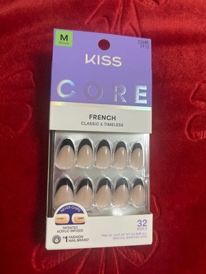 [This review was collected as part of a promotion.] really like these Kiss CORE French Tip Press On Nails Almond. the black French tip almond shape looks chic and feels surprisingly sturdy for press-ons. The 32-nail pack gives you lots of extras, so you can switch them up or redo a nail if needed without buying another set right away. They were easy to apply at home and lasted through day-to-day stuff when applied well. Overall great value for how many nails you get!