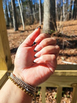 [This review was collected as part of a promotion.] These nude nails with sleek black tips are the perfect combination of chic and understated elegance. They went on smoothly and were easy to apply, even for a quick at home manicure. I love that they feel sturdy but lightweight, and removing them was simple without any damage to my natural nails. The color contrast is modern and stylish, making them perfect for both everyday wear and special occasions. Overall, a hassle free way to get a salon ready look at home!