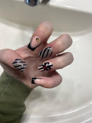 [This review was collected as part of a promotion.] Super cute design with the black tips! It was pretty easy finding the right size and I really like the length and shape. You’ll probably need your own nail file because the one included is a one time use kind so I won’t be able use it next time I put a set on.