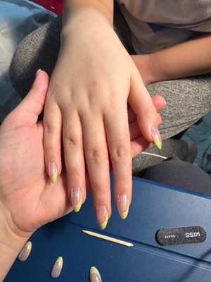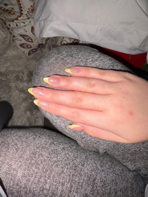 [This review was collected as part of a promotion.] Love this brand, this ones are super cute with the yellow french stripe, easy to apply and they last very long, perfect length for everyday wear.